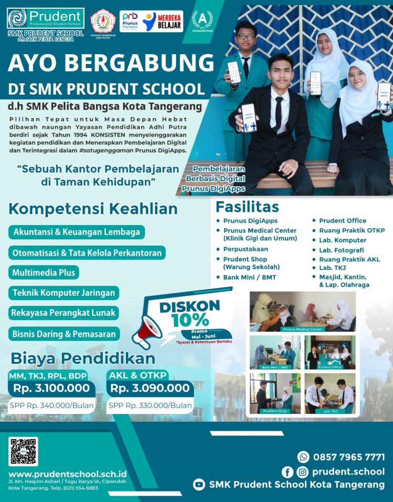 Prudent School, Kota Tangerang – 20 Februari 2023 Kegiatan Belajar Mengajar Kegiatan Kegiatan Belajar Mengajar (KBM) di SMK Prudent School menarik karena murid tidak hanya diajarkan di dalam kelas, tetapi murid juga belajar untuk bekerja di dalam Pruden Office. Domain…