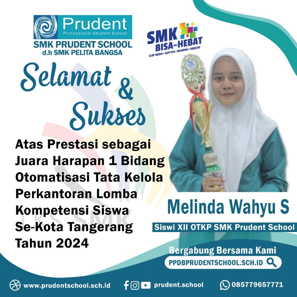 AYO BERGABUNG & SEKOLAH DI SMK PRUDENT SCHOOL KOTA TANGERANG Merupakan Institusi pembelajaran formal kejuruan tingkat menengah untuk membentuk tenaga-tenaga sistem pendukung manajemen bisnis dan/atau perkantoran (business support management sistem)yang terintegrasi dengan bisnis jasa layanan manajemen perkantoran (virtual office)