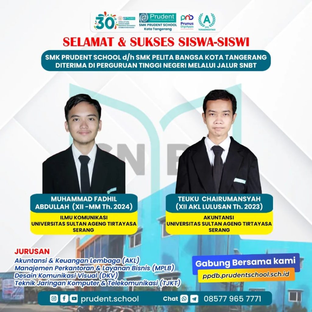Lulusan SMK Prudent School d.h SMK Pelita Bangsa Expert berkarir di Dunia Industri dan Dunia Usaha serta Mampu Berkompetisi di Perguruan Tinggi Negeri dan Swasta.